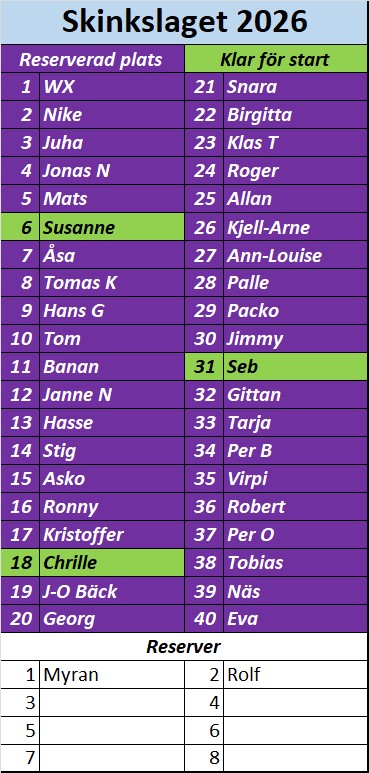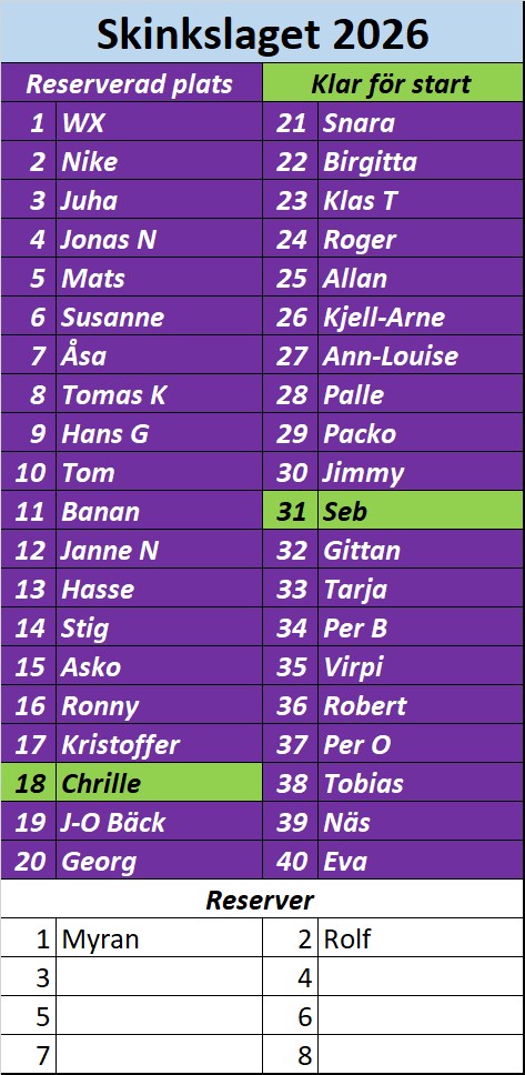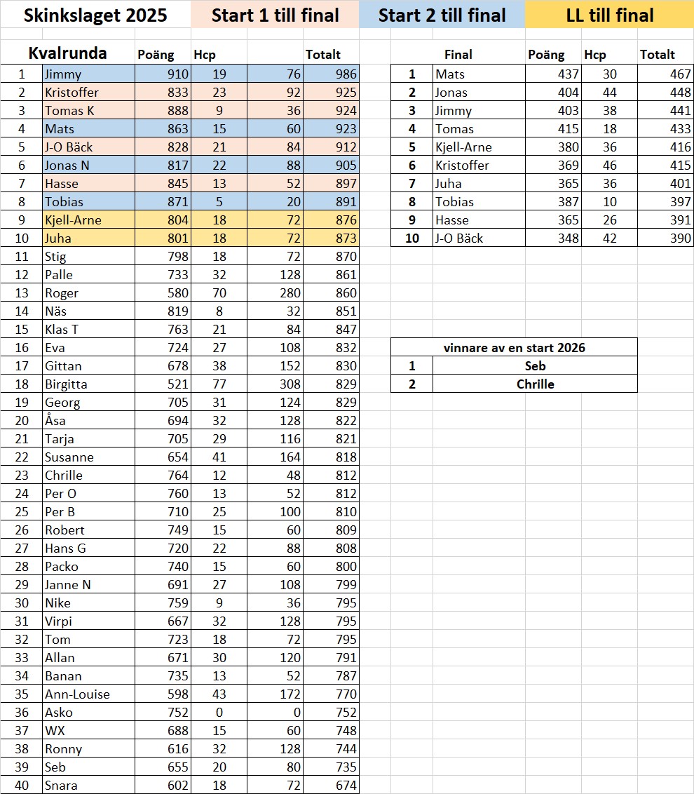 Vi spelar 4 serier fördelat på 2 starter, max antal deltagare 40 stycken. Ni som spelade 2024 har förtur.